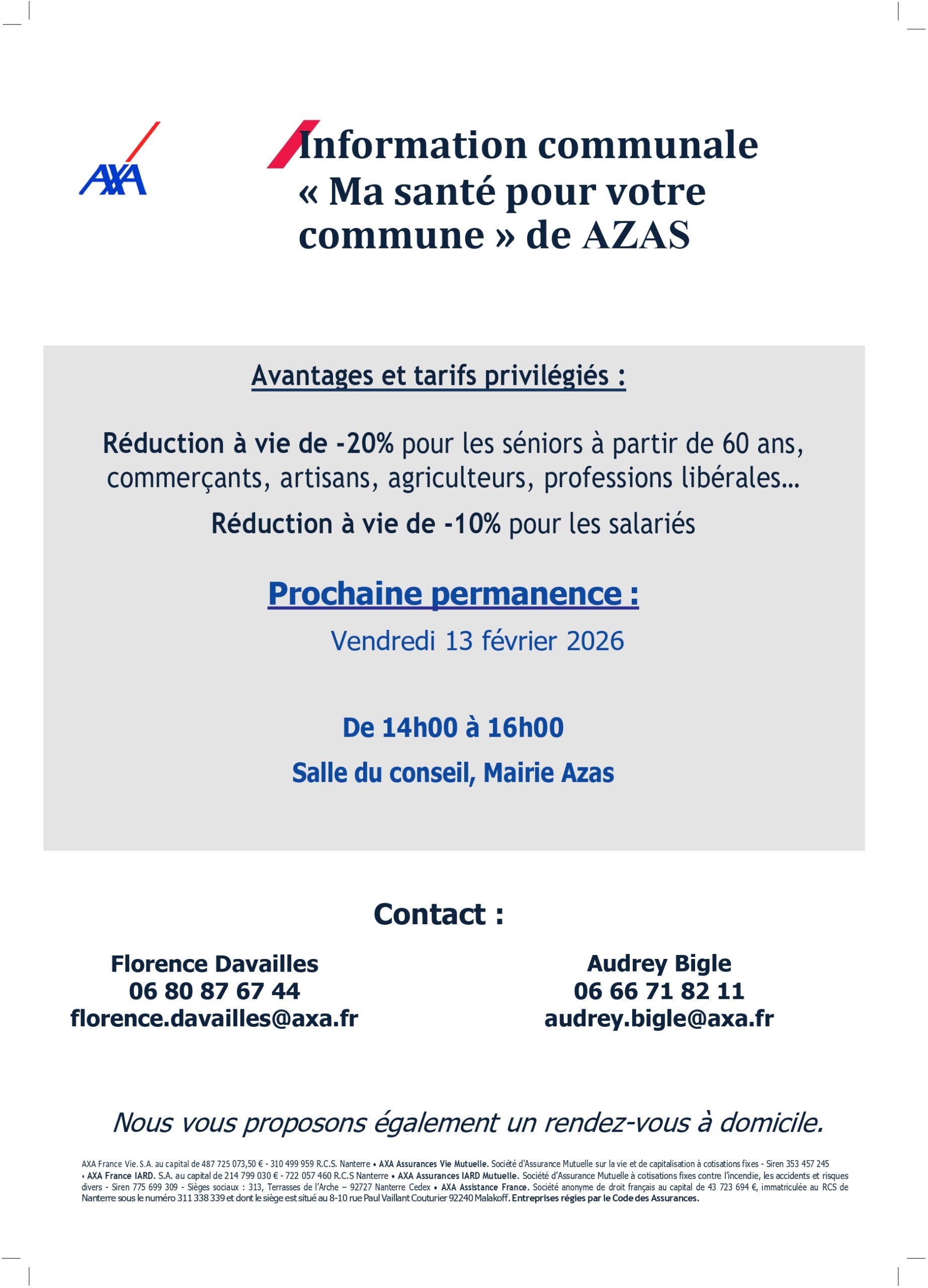 Afin de pouvoir vous transmettre les informations sur la vie de la commune, merci de bien vouloir nous communiquer par mail vos cordonnées (téléphone portable et fixe, adresse mail) à l’adresse suivante : azas.mairie@wanadoo.fr